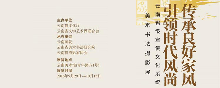 为了深入学习贯彻落实习近平总书记在党的十八届中央纪委全会上关于家风建设的重要讲话精神,助推正在全党开展的“两学一做”学习教育,中共云南省委宣传部、云南省文明办、中共云南省纪委驻省委宣传部纪检组,于2016年8月3日联合下发了《关于在省级宣传文化系统开展家风建设的通知》,云南省文化厅、云南省文联及时响应,联合组织举办“传承良好家风,引领时代风尚——省级宣传文化系统美术书法摄影展”。此次活动得到了省委宣传部、省文明办、省纪委驻省委宣传部纪检组、省纪委驻省文化厅纪检组的指导和支持,也得到了省级宣传文化系统广大美术家、书法家和摄影家的积极响应。尤为可贵的是,一些离退休老领导以及在职领导干部带头参与,积极送展作品,以实际行动支持家风建设。