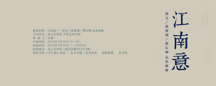 江南的富庶造就文化的发达,并滋养了中国最绵长、最稳定的山水画文脉——江南山水画。江南文人依托古代书画资源,注重山水画的笔墨语言和人文趣味,使之成为中国最具人文学术气质的绘画。郑文、钱保纲、邵仄炯三位参展艺术家是如今上海高校山水画传承的中坚,他们对江南山水特别是南宗一路山水有系统的研究,深入分析过其中的章法、笔墨和动势。同时,作为生活于都市的现代人,他们又能接触到各种新派艺术和文化,潜移默化中又吸收了不少新观念与思想。