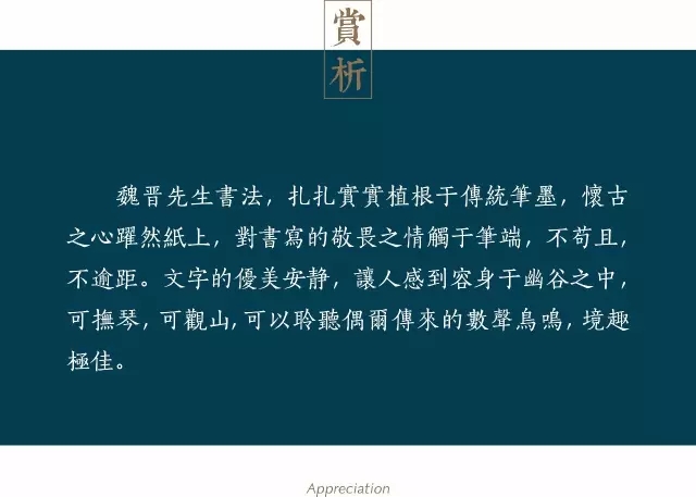 魏晋,字晋之。中国楹联学会会员,中国散文诗协会会员,江苏省书法家协会会员,江苏省青年书法家协会理事,南京市青年书法家协会副秘书长。南京市玄武区书法家协会副主席。