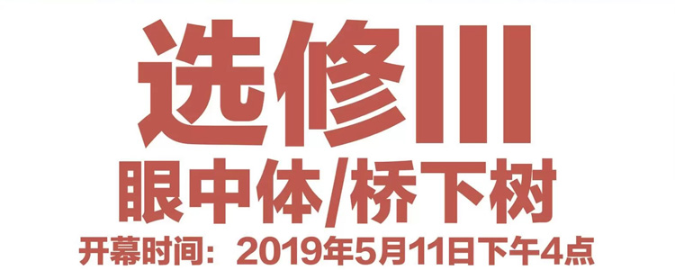 “选修”是策展人原志阳2011在北京提出的一个展览概念,从“选修I:互动·看图习像”艺术展到“选修II:绘·制作的艺术”再到“选修III:眼中体/桥下树”艺术展,共历经了9年的时间,向社会推介了大量的青年艺术家。第一次“选修”展览于2011年11月在北京酒厂艺术空间举行,当时邀请了蔡磊、周铭、徐明皓、谢莉斯、王海龙、秦蓁、刘玉洁、刘伟涛、刘朋飞、胡柯、董宇山、赵勇12位青年艺术家参加;第二次展览于2017年10月在郑州西雨艺术空间举办,邀请了杜亚璇、巩固、李蓓蕾、刘伟涛、刘永康、苏晓佳、吴涛、吴小琛、王海龙、钟永诗、郑建辉、赵津毅12位青年艺术家;2019年“选修III:眼中体/桥下树”作为“选修”系列展的第三回,将邀请白致源、高山、黄珂、黄向前、贾靖、李啸非、刘永、刘峰、潘苗、吴涛、游雯迪、杨中伟、杨华、张文荣14位青年艺术家参加。