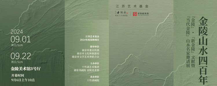 由南京市委宣传部、南京市文化和旅游局、南京市文学艺术界联合会指导,十竹斋艺术集团、南京书画院金陵美术馆主办,十竹斋画院承办的江苏艺术基金2024年度资助项目:“金陵山水四百年”——“金陵”·“新金陵”文献暨当代金陵山水名家邀请展,将于2024年9月6日上午10:00在金陵美术馆三号厅隆重开幕!